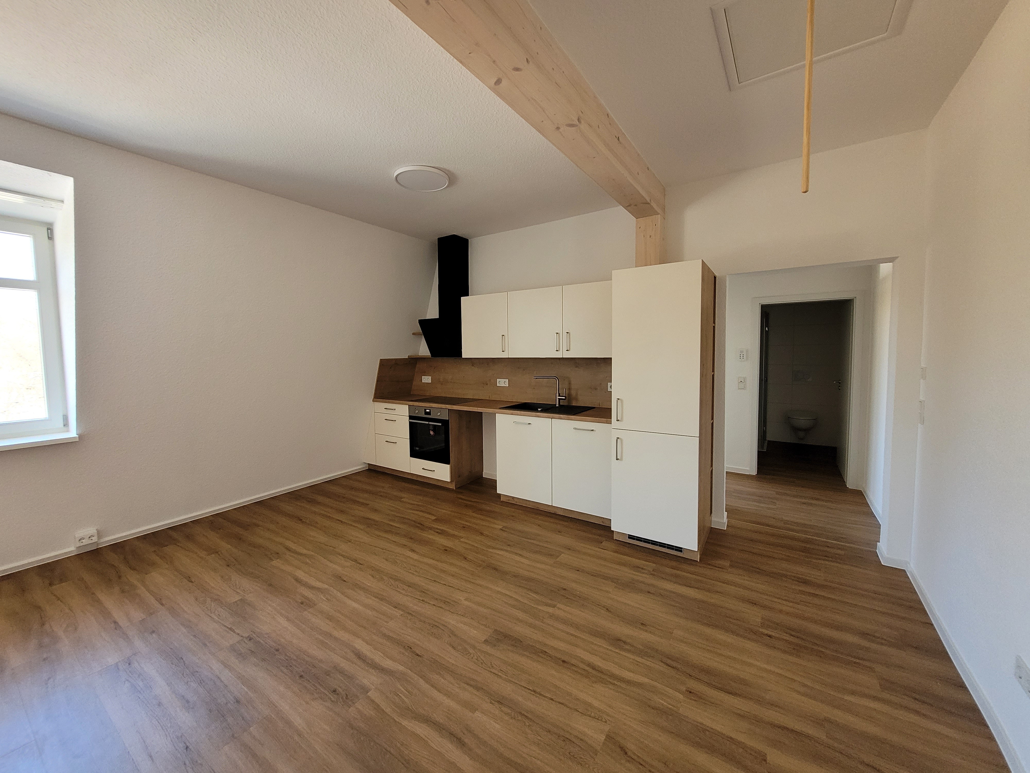 Diese herrliche 2-Zimmerwohnung befindet sich im Obergeschoss des kernsanierten Bahnhofs in Oberaula. Die Wohnung besteht aus Wohnzimmer, Schlafzimmer, Küche, und Bad mit Dusche. Keller und Stellplatz sind vorhanden. Beheizung über Wärmepumpe.